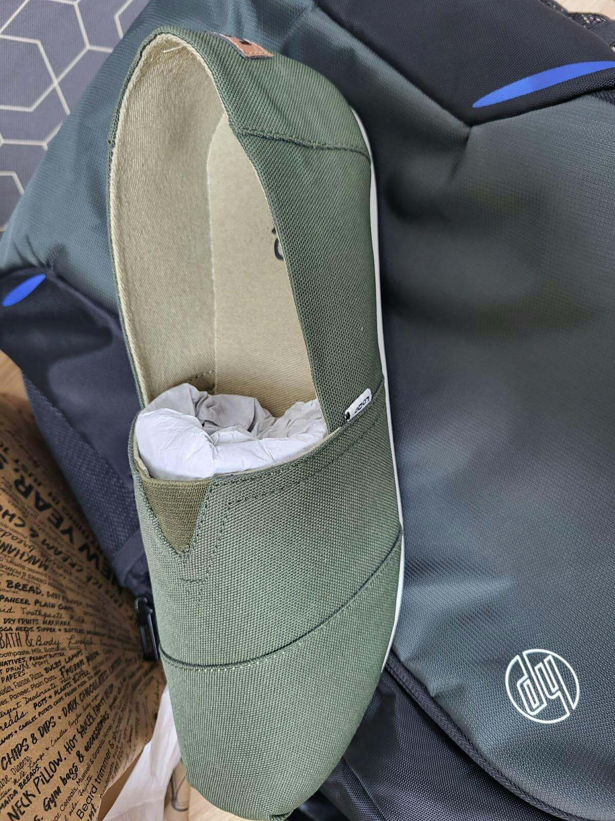 - Olive green canvas upper with a clean silhouette